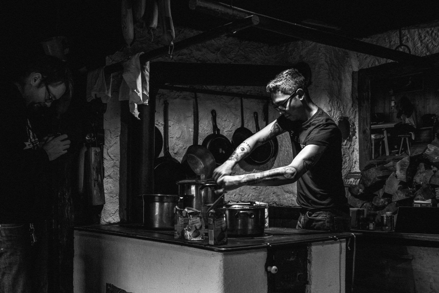 Fast die ganze Gruppe aus dem letzten #ebbeundflut17 MeetUp konnte ich zusammentrommeln, um in diesem Jahr eine einsam gelegene Almhütte in Tirol und deren Umgebung unsicher zu machen. Abgesehen von einigen Problemen mit der Wasserversorgung – was stellt man sich an, ist doch schließlich ein Gebirgsbach um die Ecke! – sind diese sieben Tage erstaunlich harmonisch und entspannt verlaufen. Die meisten von uns haben vermutlich den Großteil der Zeit in der – selbstverständlich mit klassischem Ofen beheizten – wunderbar gemütlichen, jedoch eigentlich zu kleinen Küche verbracht. Kennt man ja aus WG-Zeiten, der Mittelpunkt allen Lebens ändert sich jedenfalls selbst auf 1.400 Höhenmetern nicht. Aber auch die Natur drumherum inkl. dichtem Nebel, gewalttätigen Kühen und aufdringlichen Schafen wurde erkundet. Was wir nicht (oder nur sehr kurz) gesehen haben: Bergziegen. Möglicherweise waren wir die einzigen im Tal.