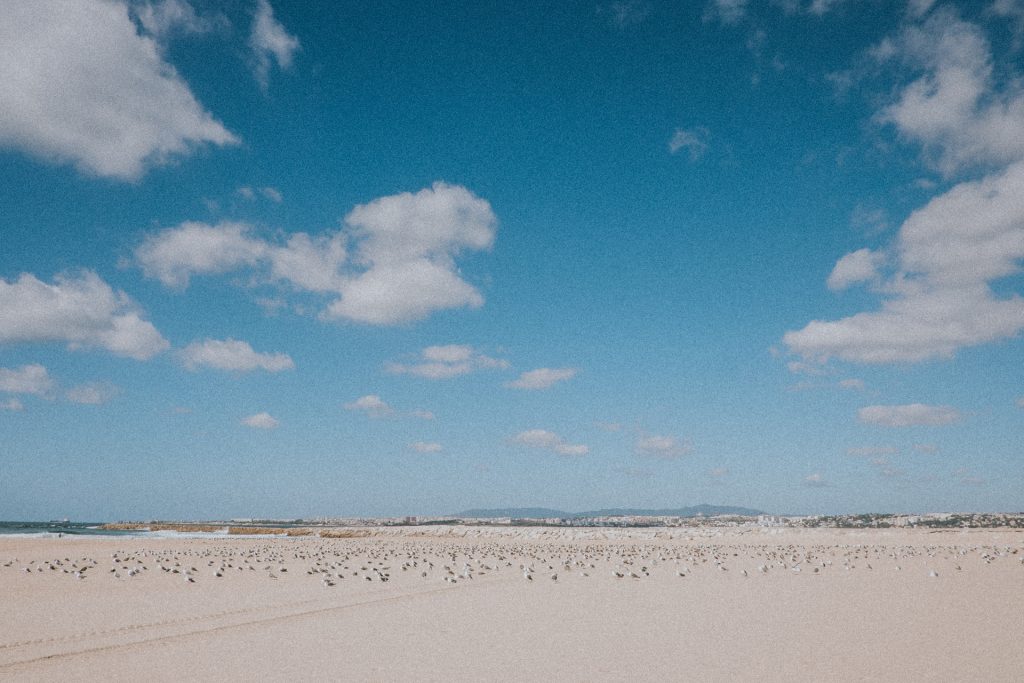 Dieses Mal verschlug es meine Reisebegleiter*innen und mich nach Trafaria auf der Südseite des Tejo. Da ich dort vorher nicht gewesen war, gestaltete sich die Reise als Fahrt ins Blaue. Und dieses Blau war wunderschön.
